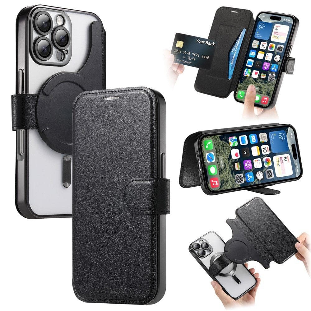 CASENEO For iPhone 16 Pro Max Case Compatible with MagSafe Detachable Leather Phone Cover with Lens Film