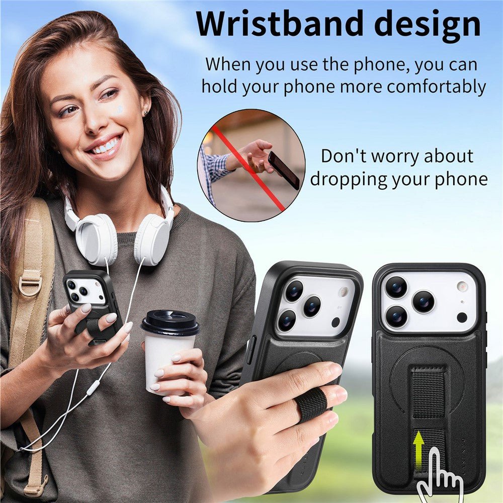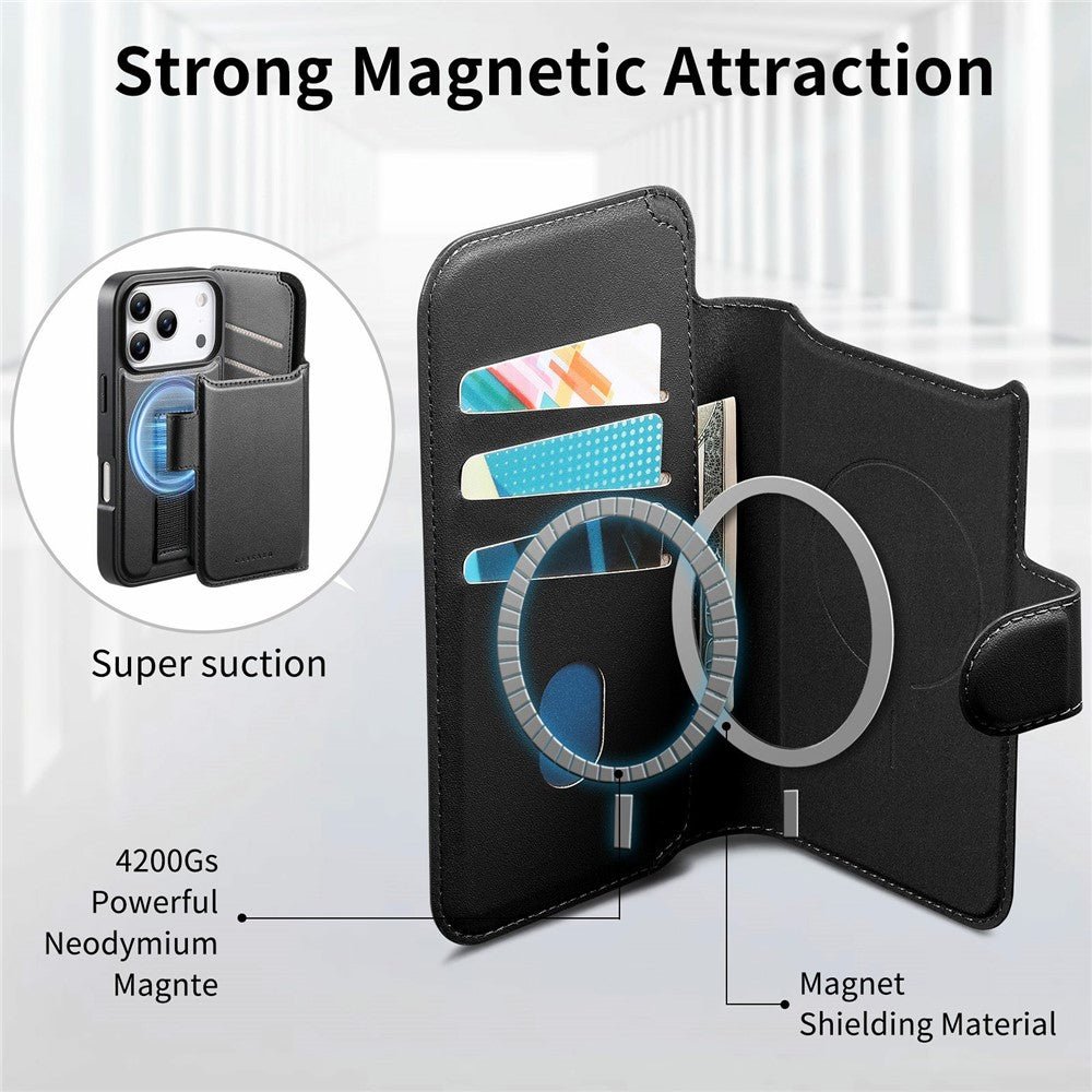 CASENEO For iPhone 17 Pro Max Magnetic Case RFID Blocking Wallet Detachable Leather Phone Cover with Wristband