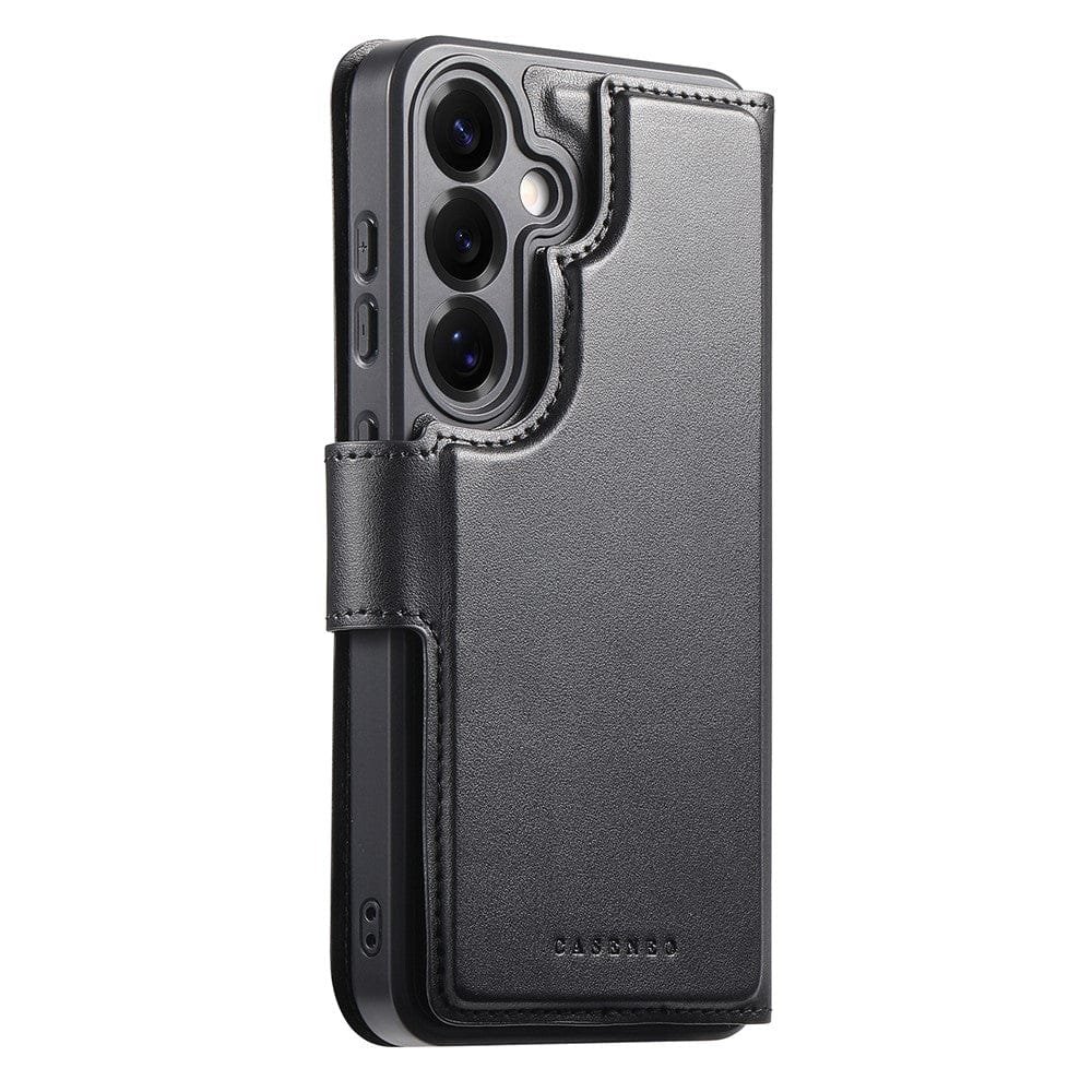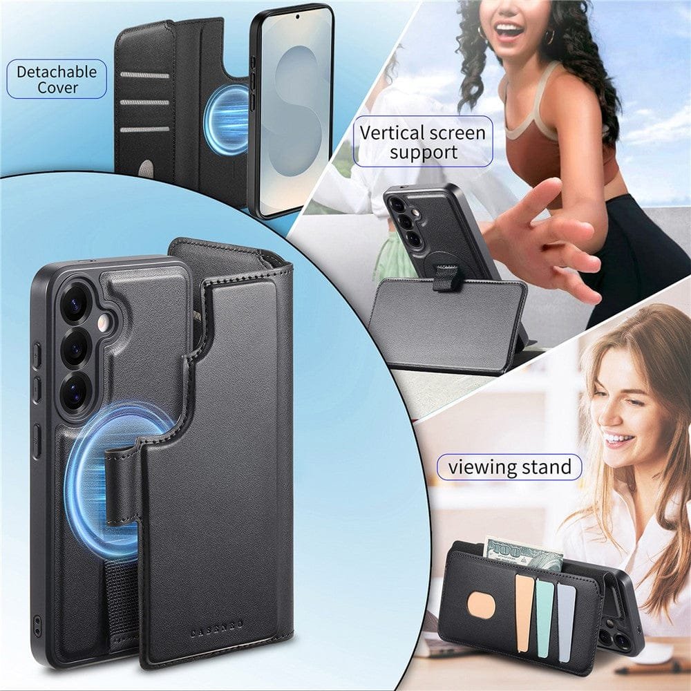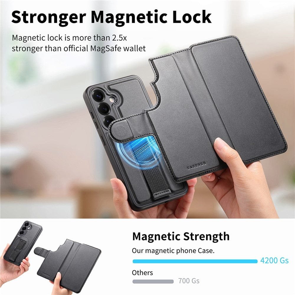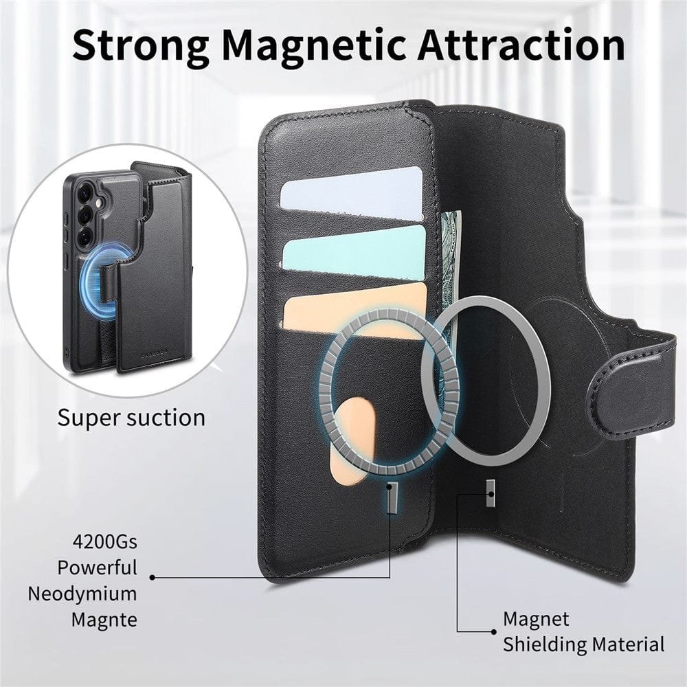 CASENEO For Samsung Galaxy S25 Magnetic Case RFID Blocking Detachable Wallet Leather Phone Cover with Wristband