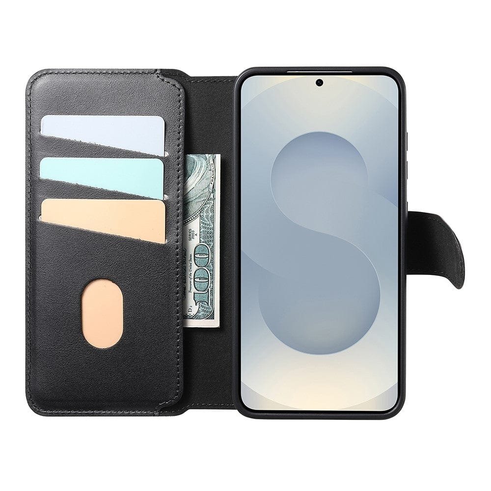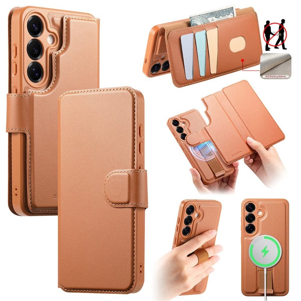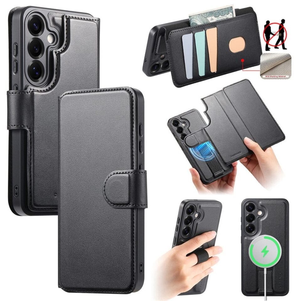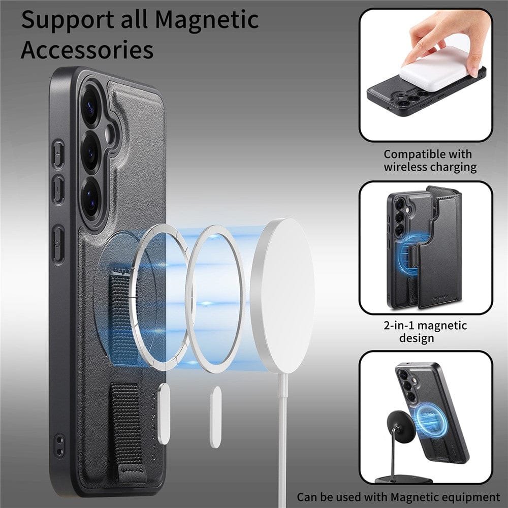 CASENEO For Samsung Galaxy S25 Magnetic Case RFID Blocking Detachable Wallet Leather Phone Cover with Wristband