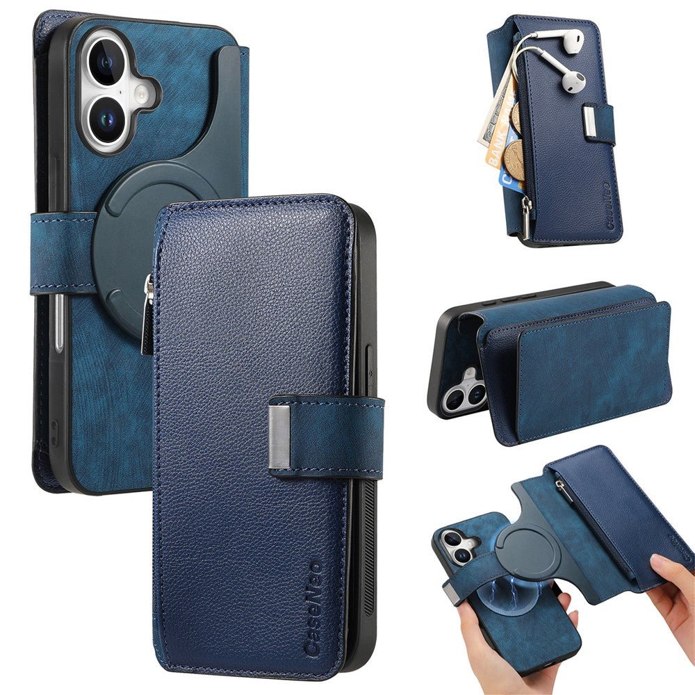 CASENEO For iPhone 17 Case Magnetic Detachable Zipper Wallet Leather Flip Phone Cover