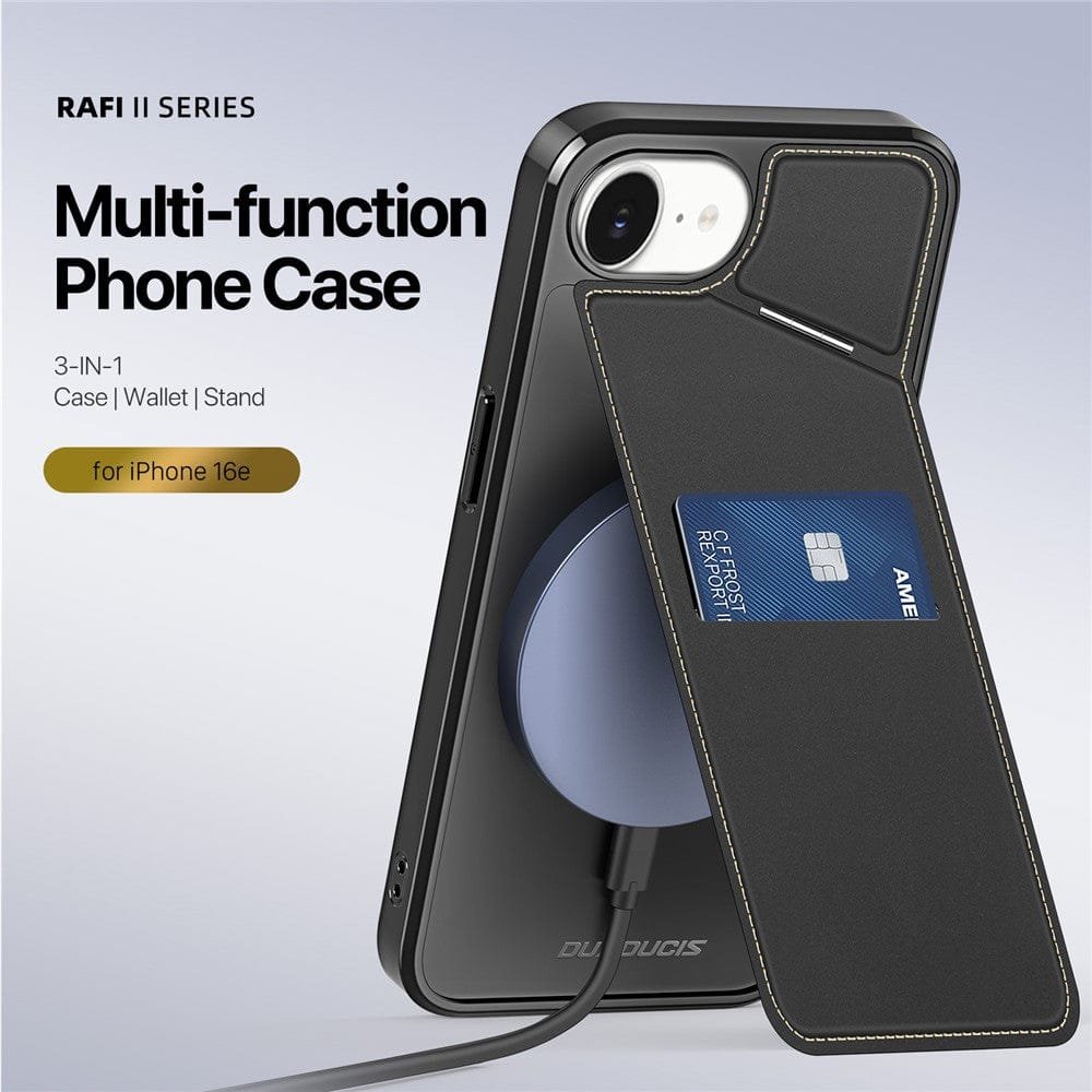 DUX DUCIS Rafi II Series For iPhone 16e Magnetic Case Leather Back Cover with RFID Blocking Card Slots