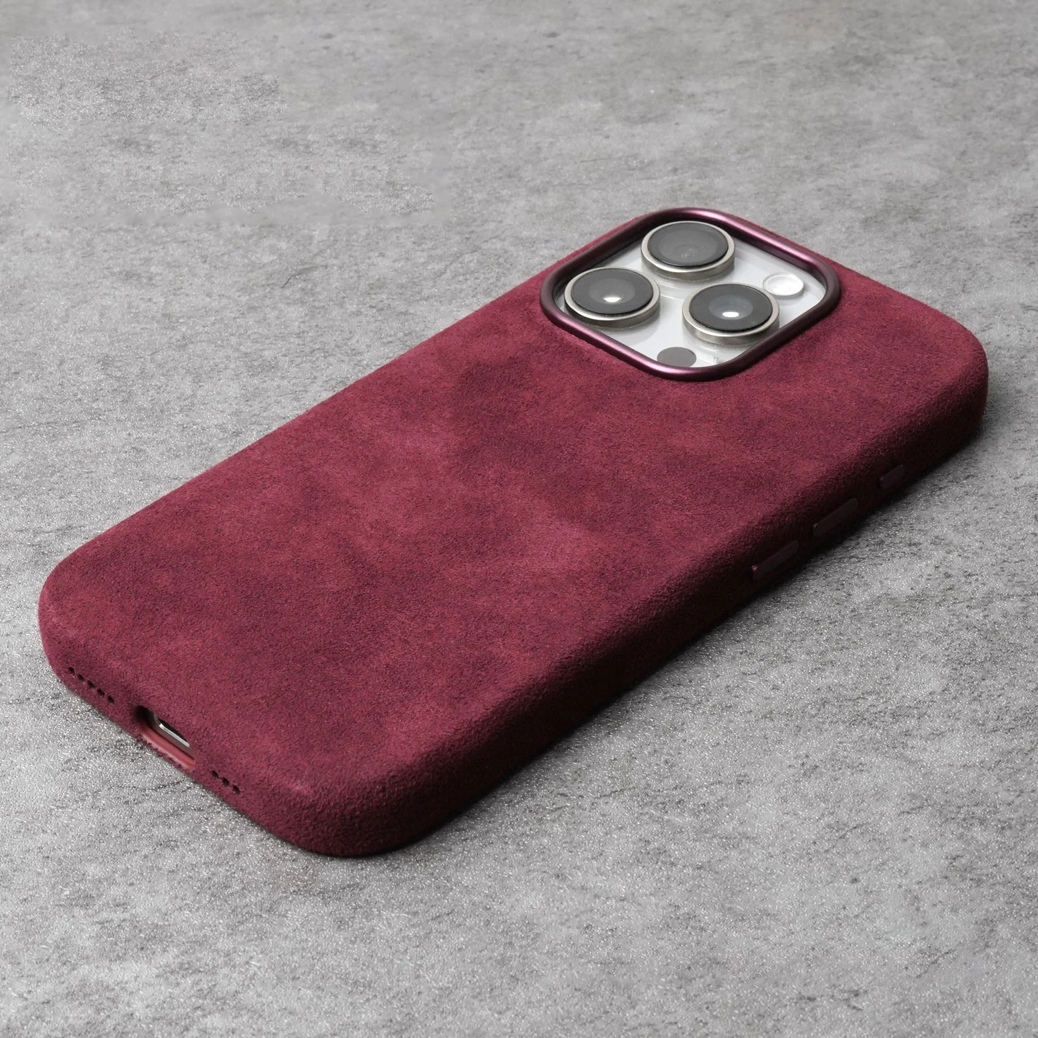Full-Wrap Italian Alcantara Case for iPhone 16-15 Pro & Pro Max | Compatible with MagSafe (Burgundy)