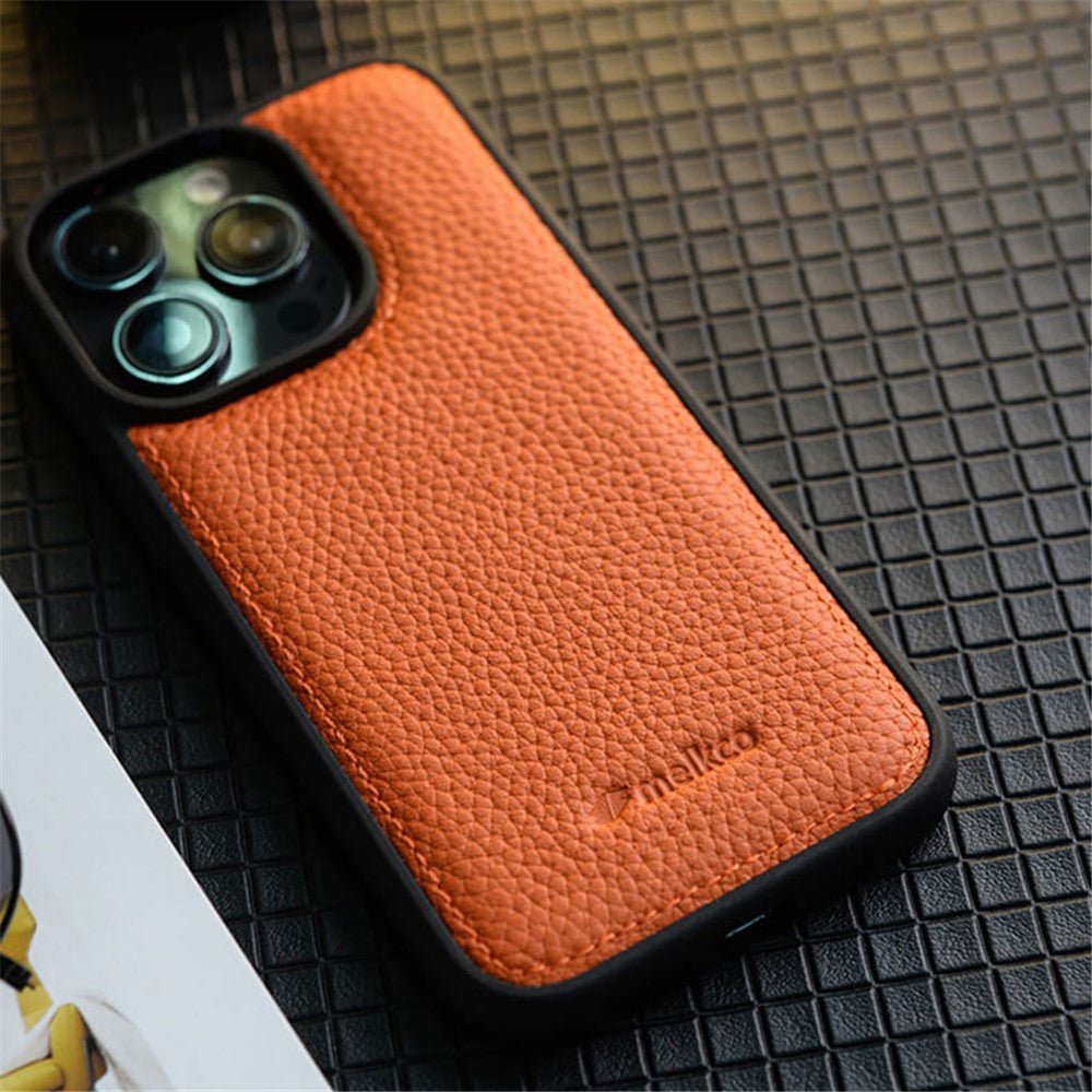 MELKCO For iPhone 15 Pro Case Genuine Cow Leather Coated Phone Cover