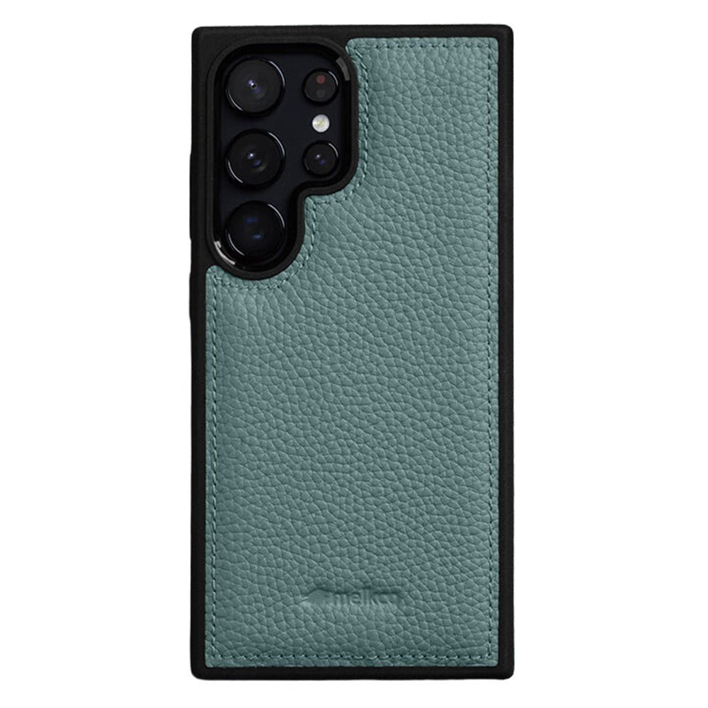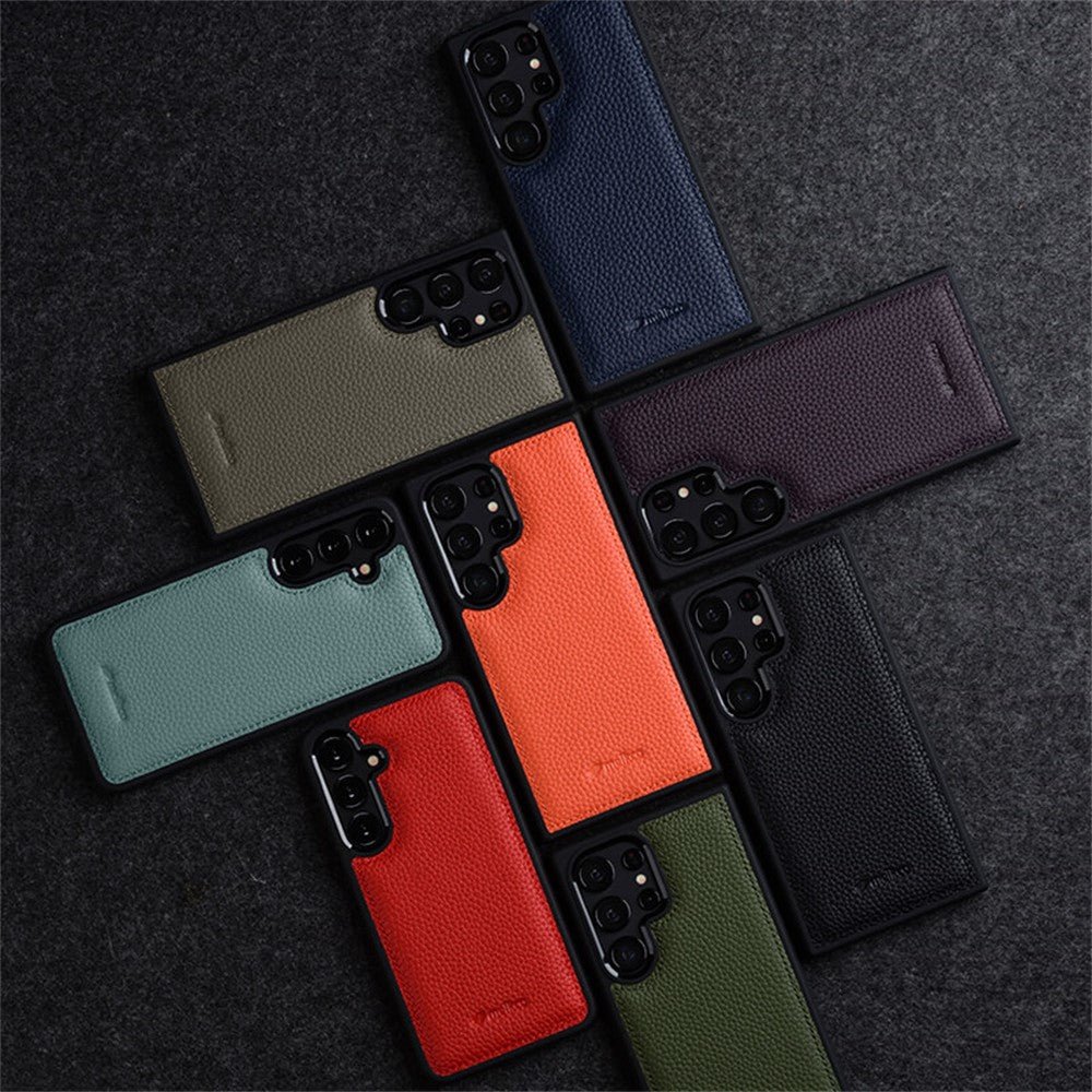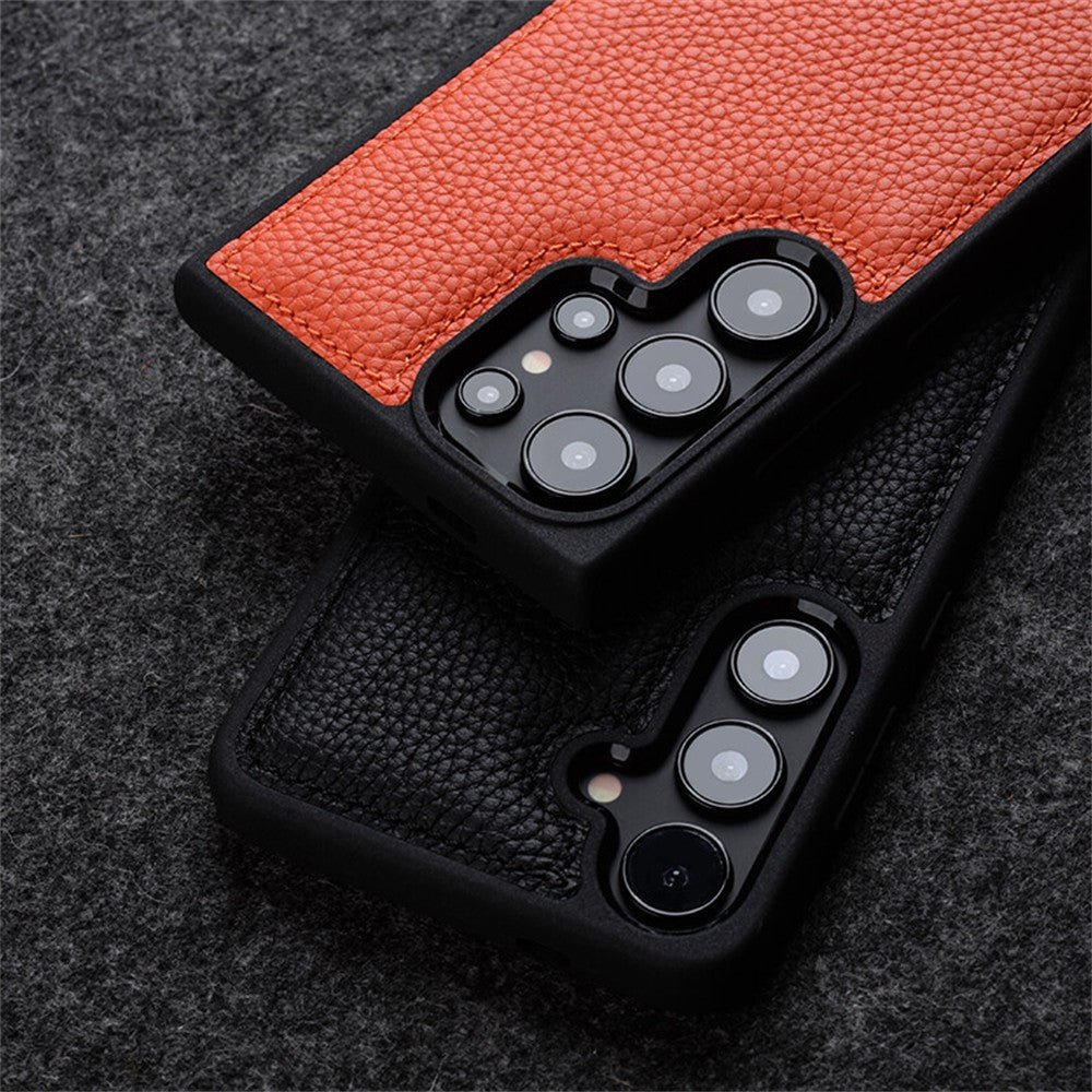 MELKCO For Samsung Galaxy S24 Ultra Case Genuine Bovine Leather Shockproof Silicone Frame Phone Cover