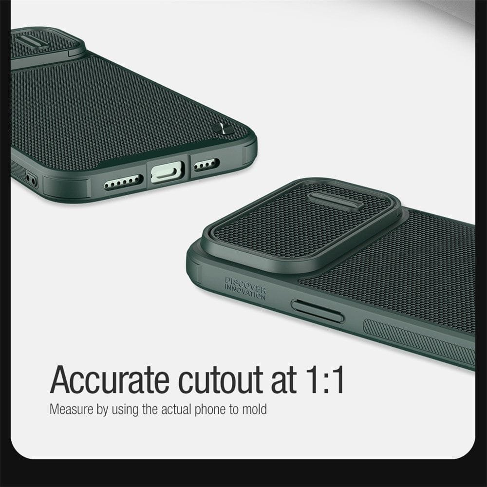 Made from refined nylon fiber, environmental TPU, and PC materials, the NILLKIN case is tough and durable. The surface with a 3D texture design is wear-resistant, anti-skidding, dust-proof, and anti-fingerprint. The torsion spring lens cover is adopted, and the built-in special-shaped torsion spring device makes the opening and closing of the semi-automatic lens cover more smooth, prevents the lens from scratching, and protects the privacy. The surface is woven with selected nylon fiber material, which is wear-resistant, scratch-resistant, fingerprint-proof, soft and comfortable to the touch.