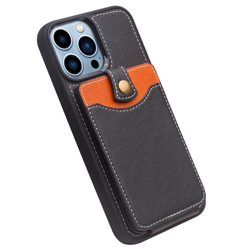 This phone case is made of cowhide leather and TPU material, which is wear-resistant and durable. Back card slots can hold ID card or essential credit cards. Snap buttons closure secures inner cards.