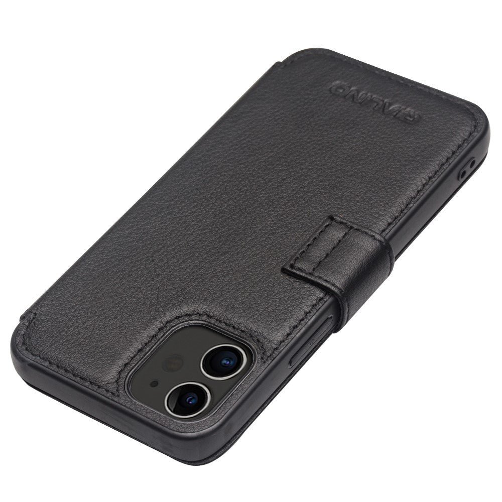 QIALINO for iPhone 12 Mini Business Style Magnetic Clasp Top Cowhide Leather Phone Cover