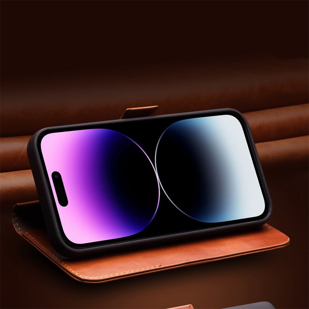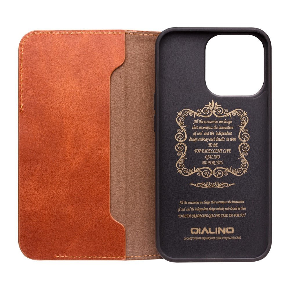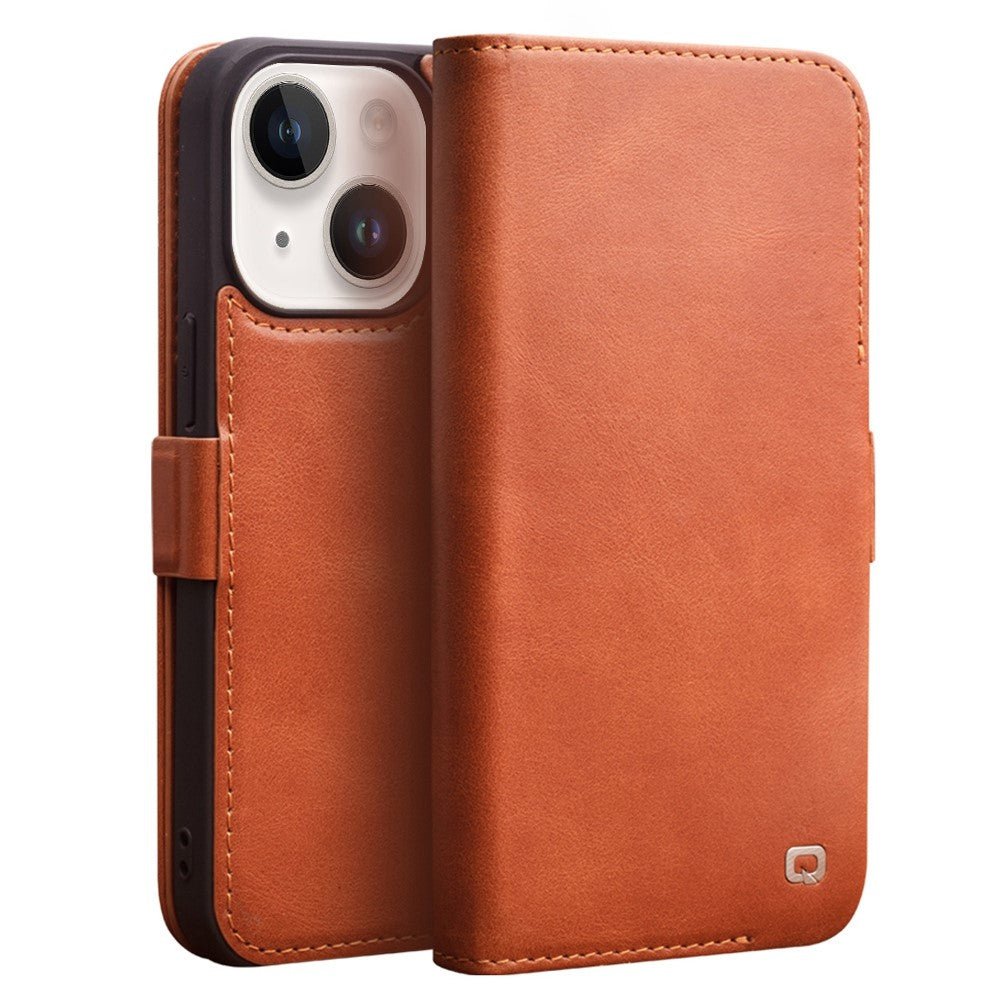 QIALINO For iPhone 14 Plus Case Drop-Proof Business Style Genuine Leather Wallet Magnetic Closure Phone Cover