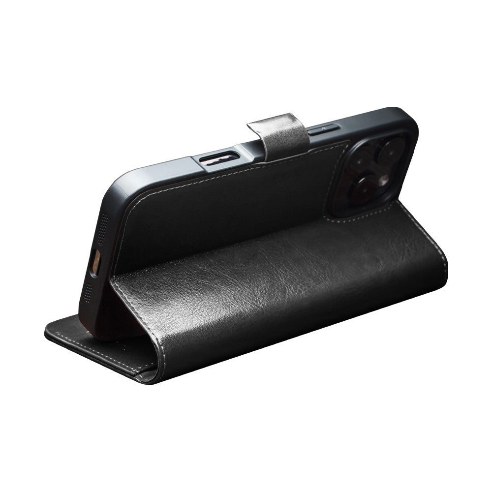 QIALINO For iPhone 16 Pro Max Case Genuine Cow Leather Wallet Magnetic Closure Phone Cover