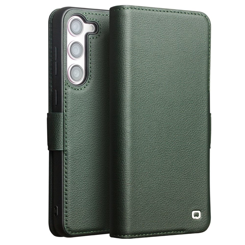 QIALINO For Samsung Galaxy S22 Wallet Case Genuine Cow Leather Magnetic Closure Flip Phone Cover