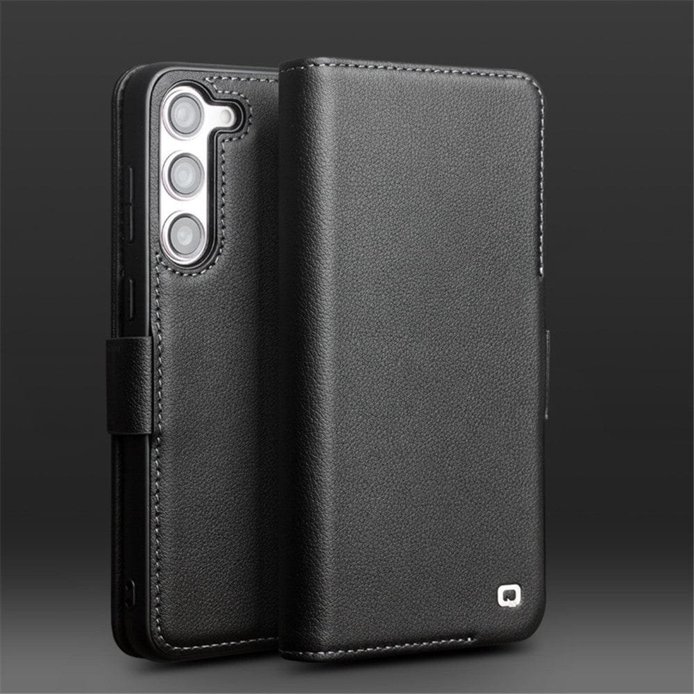 QIALINO For Samsung Galaxy S23+ Wallet Case Genuine Leather Magnetic Closure Flip Phone Cover