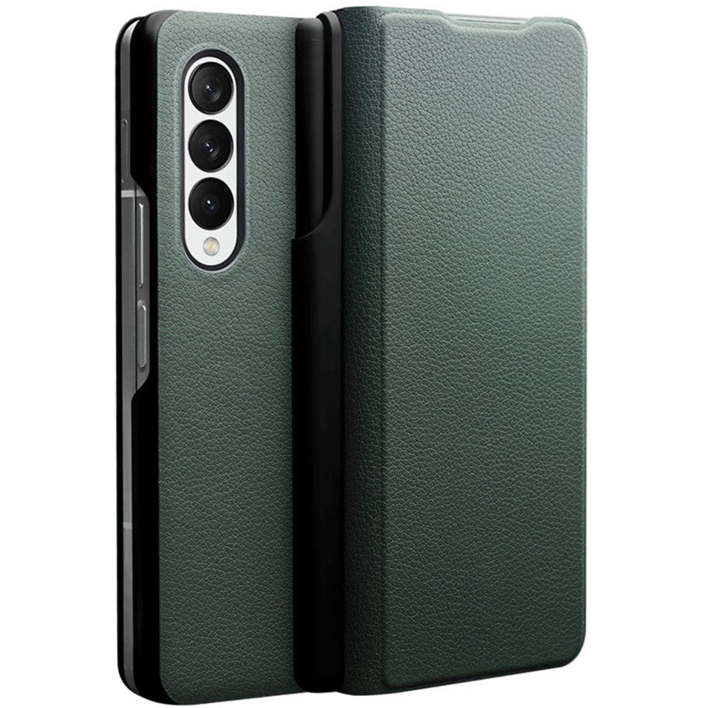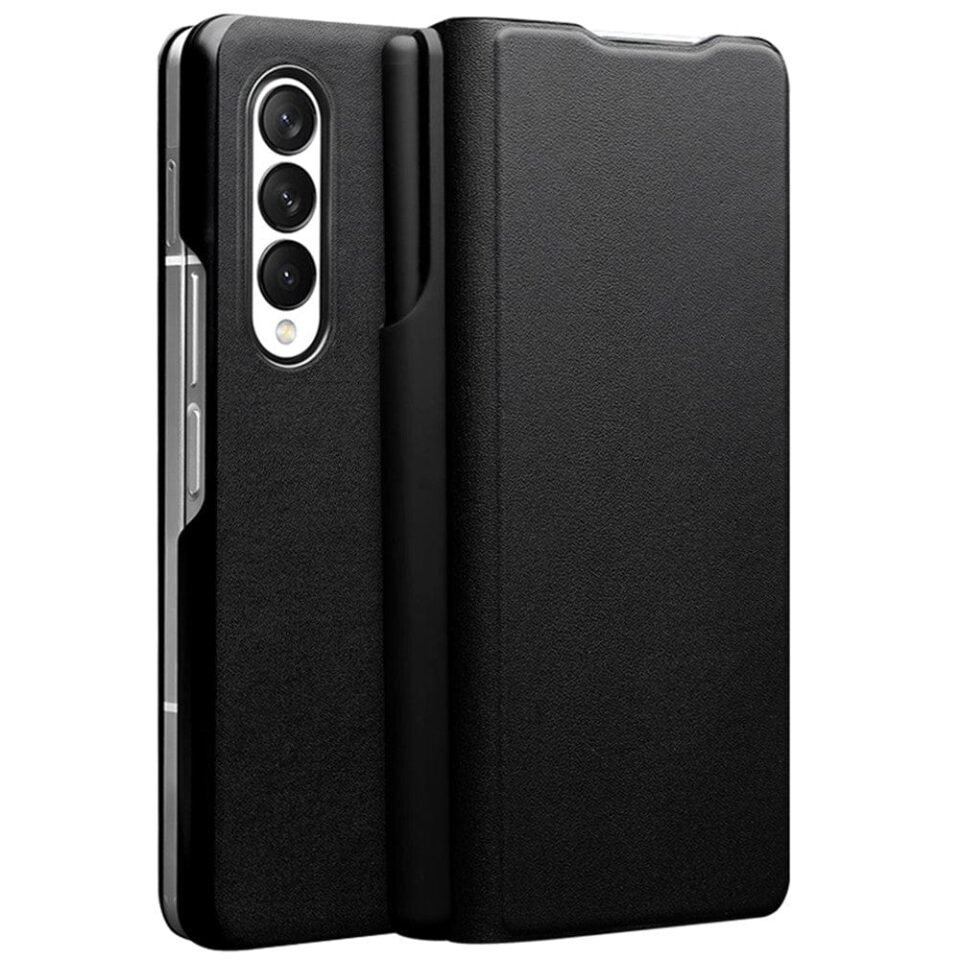QIALINO For Samsung Galaxy Z Fold3 Case Nappa Texture Genuine Leather Flip Phone Cover with Pen Holder