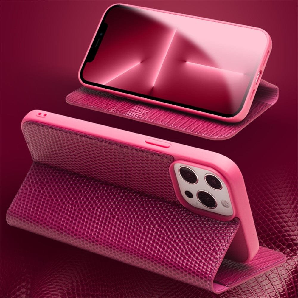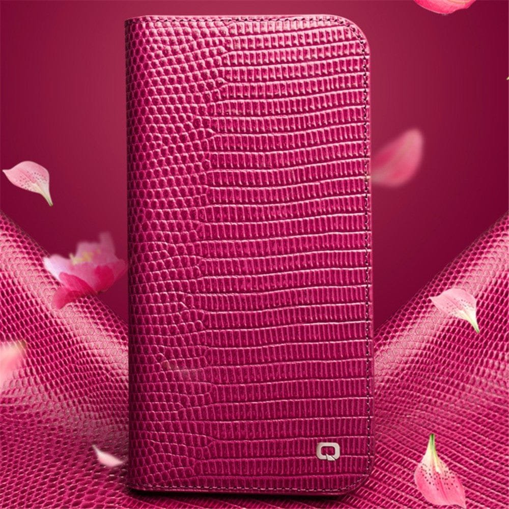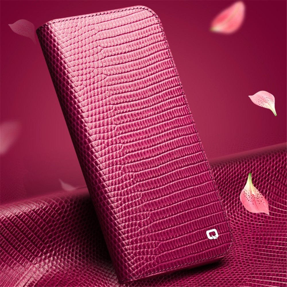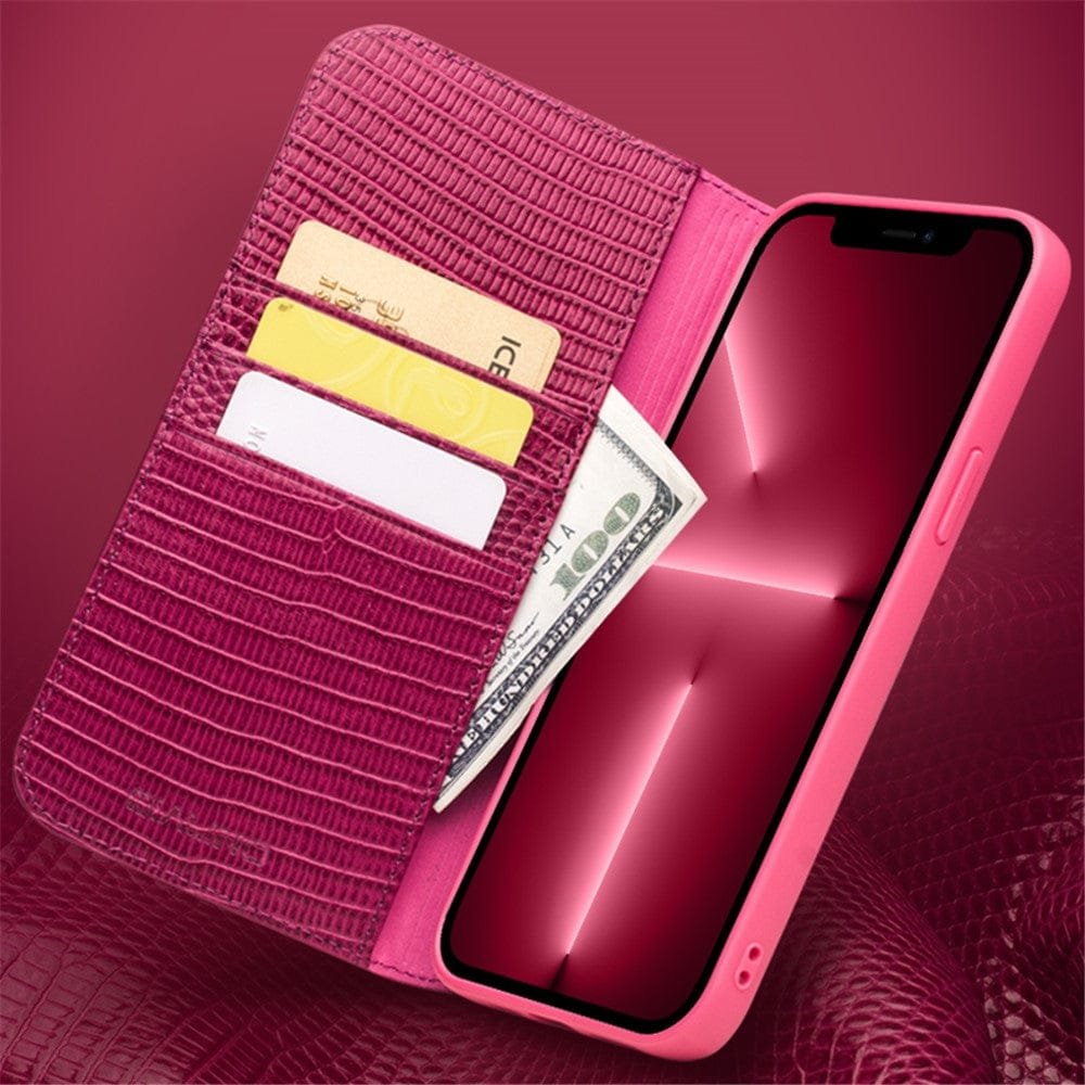QIALINO for iPhone 13 Pro Case Scratch Resistant Wallet Stand Crocodile Texture Genuine Leather Anti-Shock Phone Cover