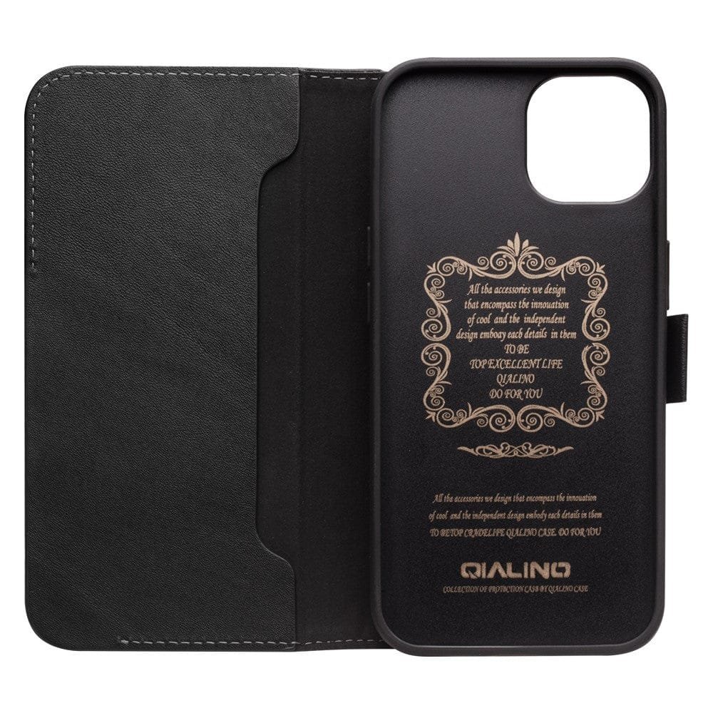 QIALINO for iPhone 13 Mini Case Anti-Fall Magnetic Closure Wallet Genuine Leather Phone Cover